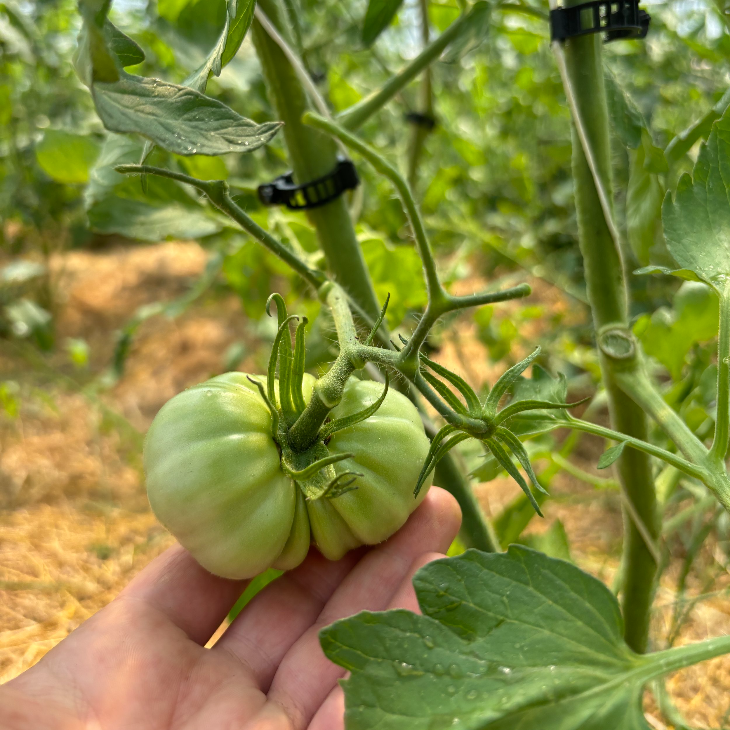 We also recently planted basil, peppers, ground cherries, and lettuce in Miracle Garden and have been braving the heat of the high tunnel to trellis the quickly growing tomatoes! Shoutout to Bec who really spearheaded the trellising with grace, resilience, and determination. The high tunnel is looking absolutely stunning and these tomatoes are about to turn a beautiful orangey-red at any moment. Tomato season is upon us, my people. Baruch Hashem!